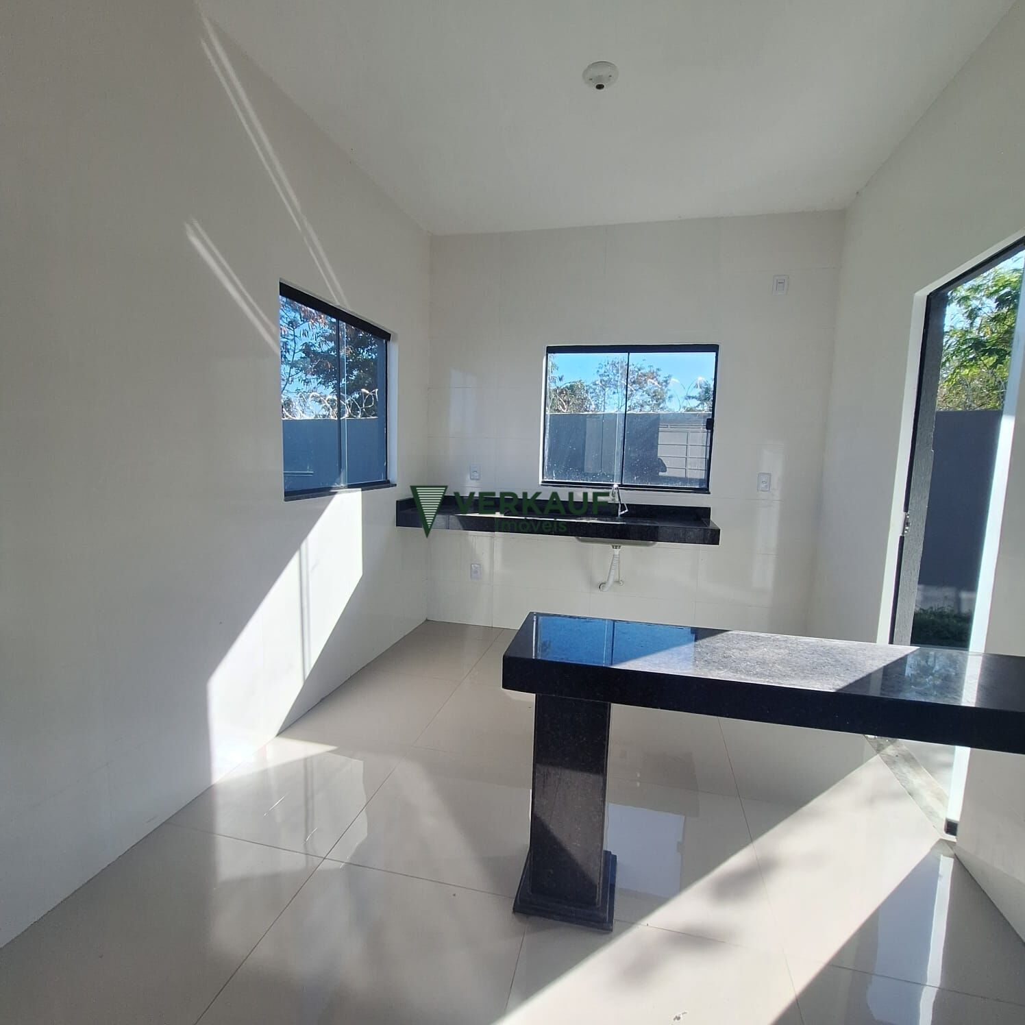 Casa 03 quartos, sendo uma suíte, sala de estar/jantar pé direito duplo, cozinha americana, banheiro social, hall de circulação, área de serviço coberta, 02 vagas de garagem descoberta.