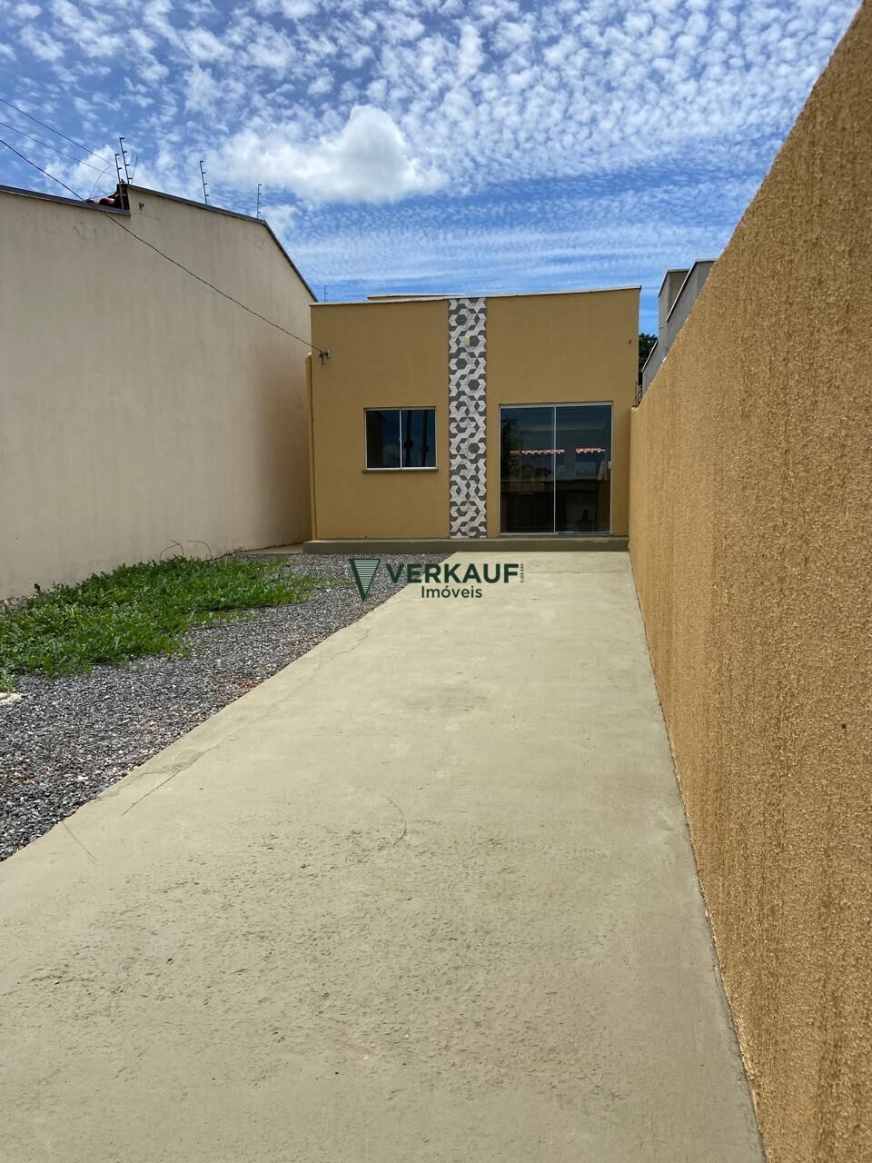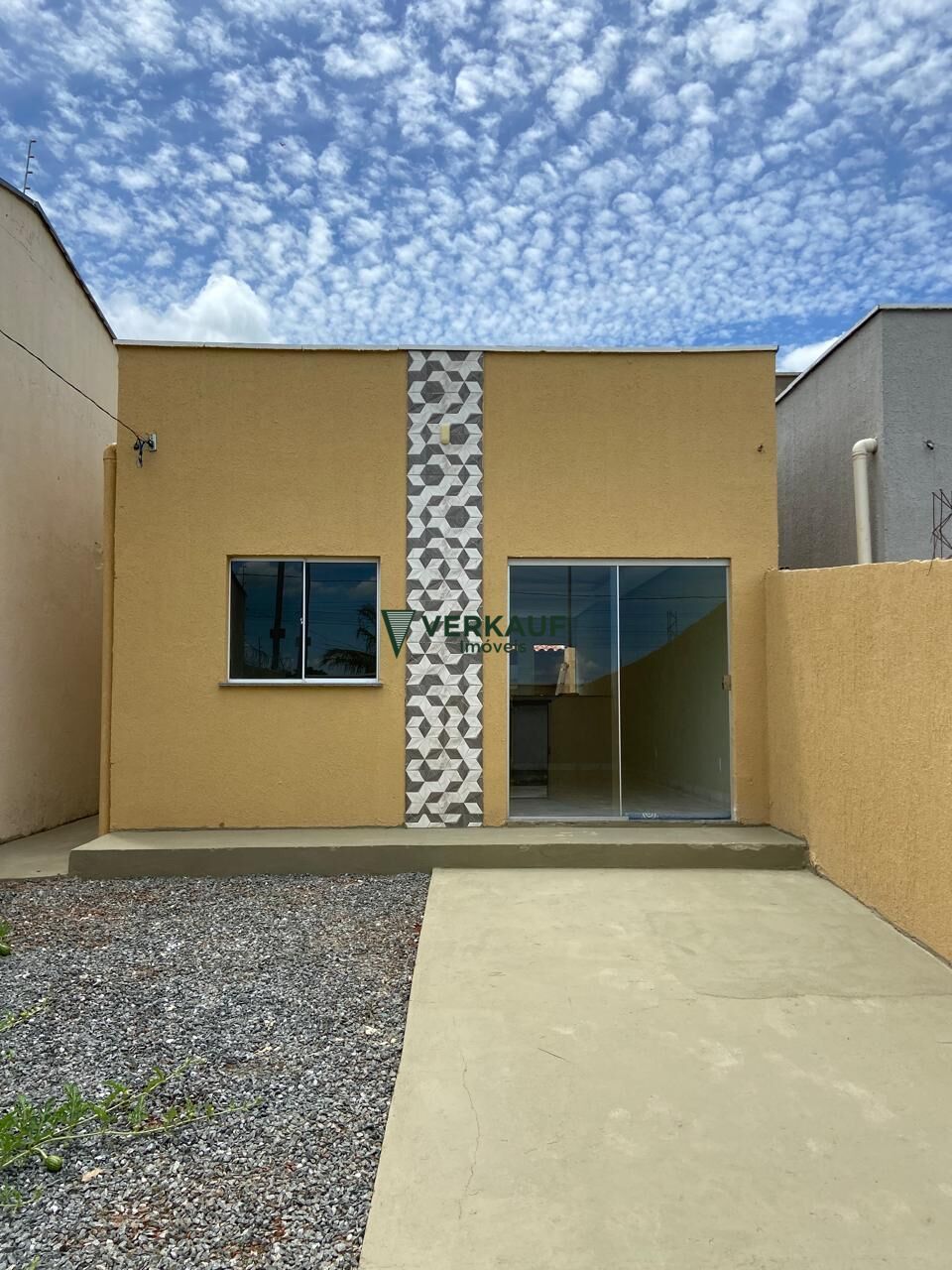 Casa 02 quartos sendo uma suíte, sala de estar/jantar, cozinha americana, banheiro social, hall de circulação, área de serviço coberta, vagar de garagem descoberta,